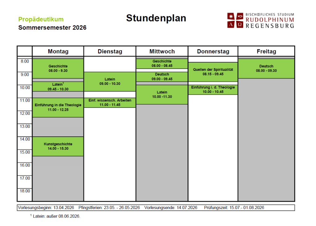 Stundenplan Propädeutikum